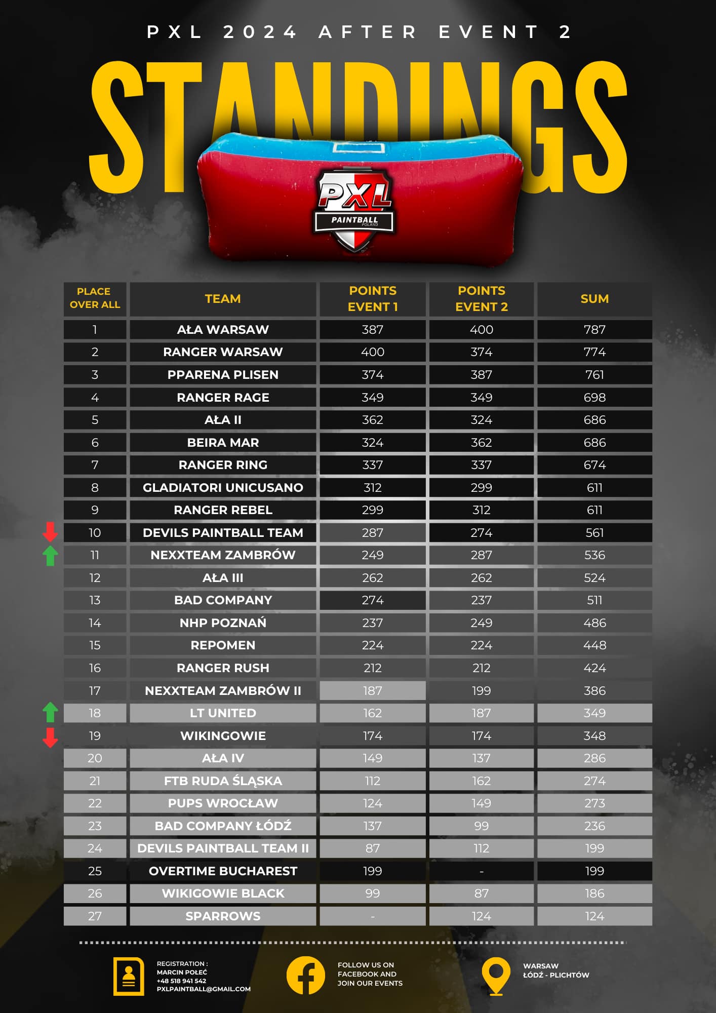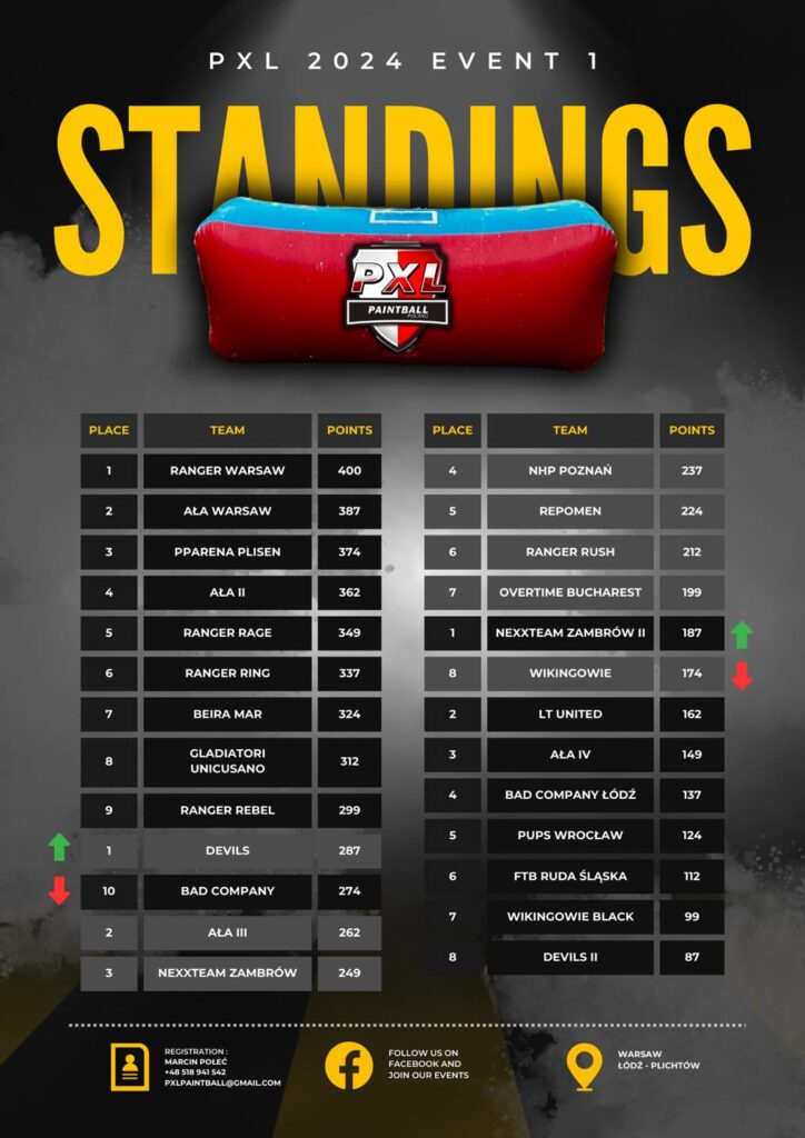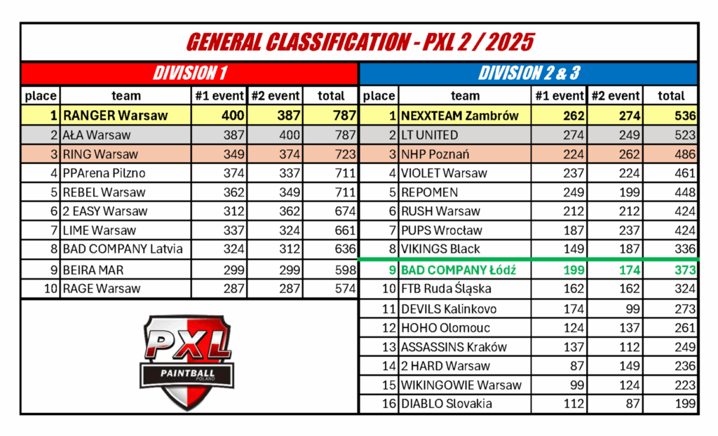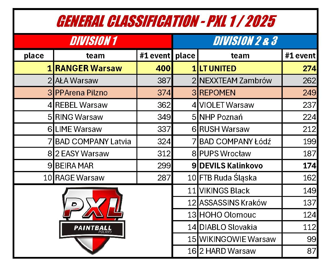 Klasyfikacja generalna po drugim turnieju PXL 2024