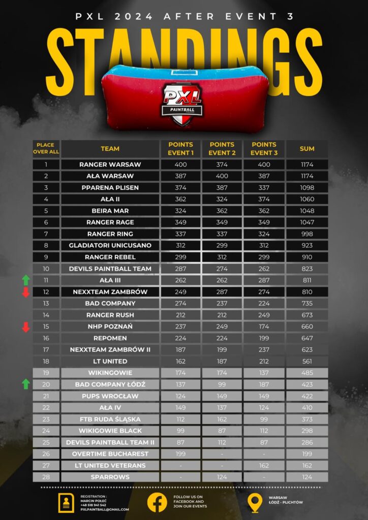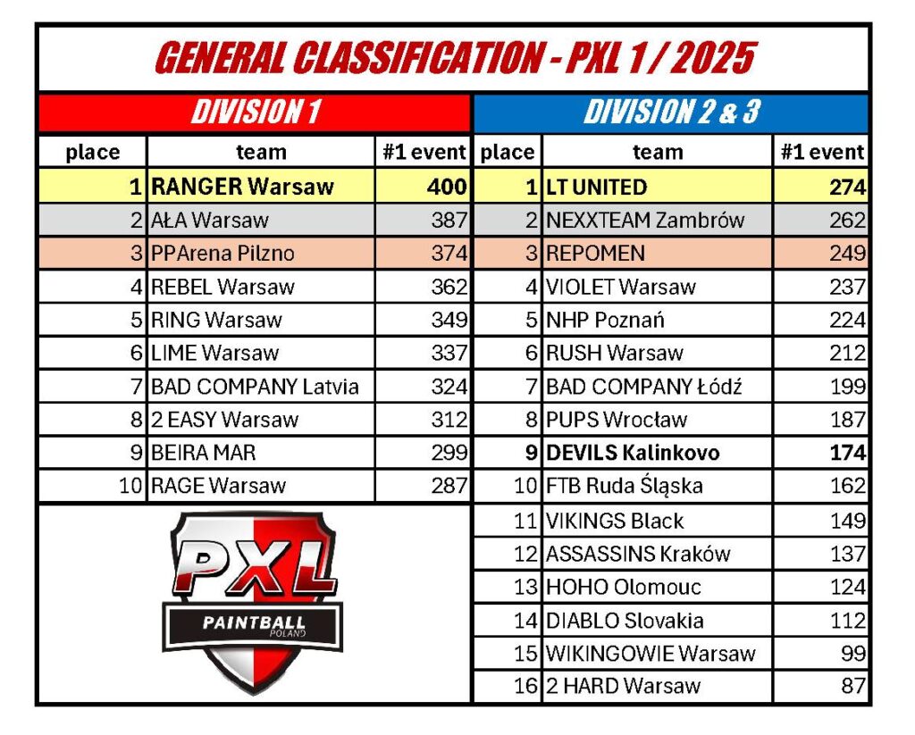 Klasyfikacja generalna po trzecim turnieju PXL 2024